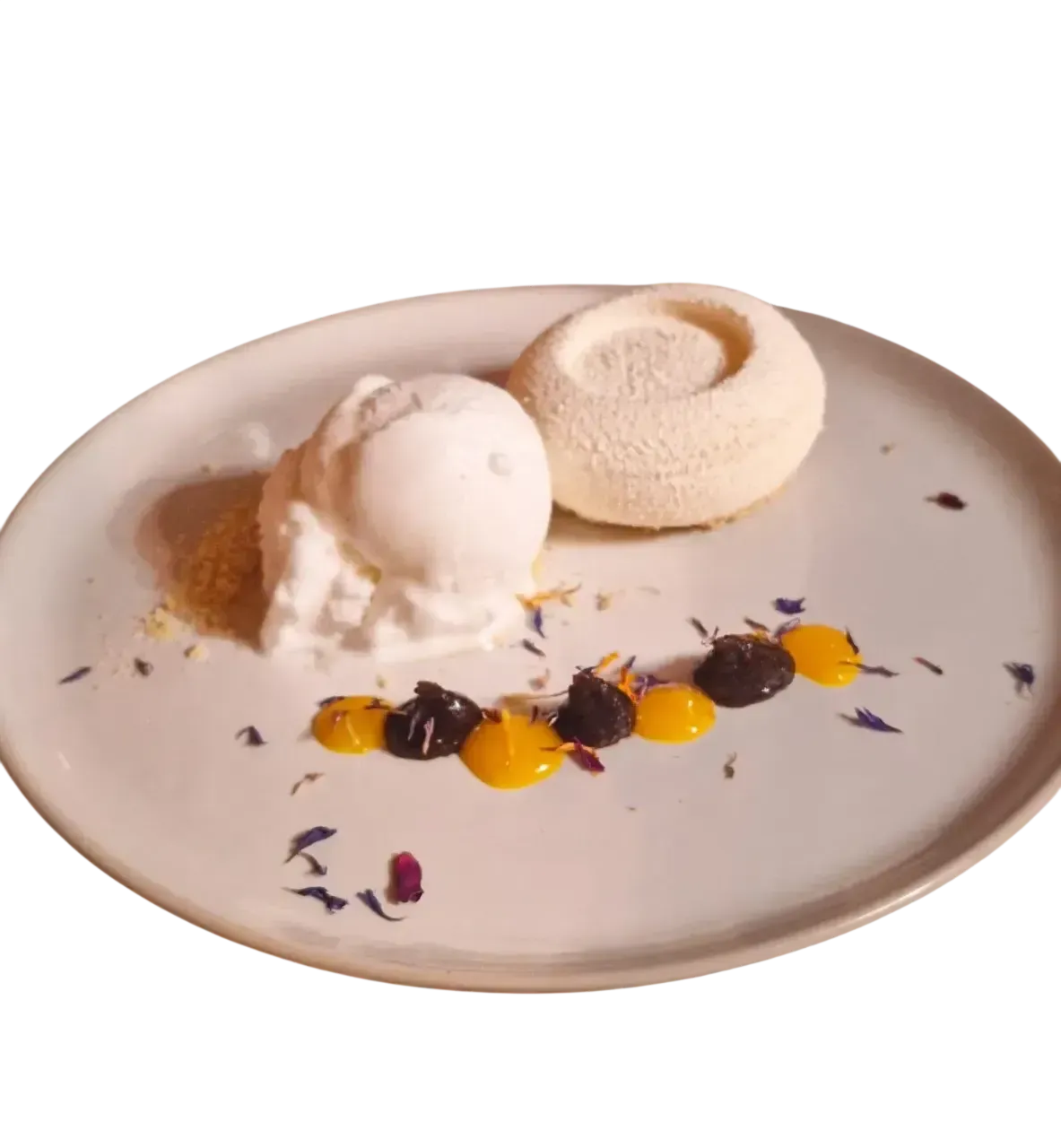 - Semifrío de bergamota y sorbete de limón.